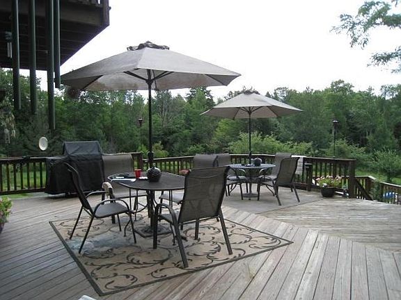 Log home situated in a totally private park-like setting. Relax on the expansive deck overlooking the pond and inground pool. The living room features a stunning stone fireplace with cathedral ceilings and large windows. The kitchen highlights beautiful granite countertops and plenty of storage. There is a large family room just off the kitchen with a second fireplace and direct access to the fabulous outdoors. There is a whole house generator included in the sale. This home needs updating but worth the effort !!!