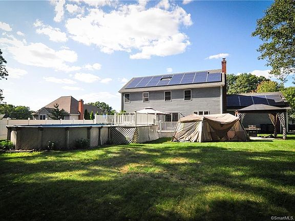 Enjoy this beautiful colonial set in a cul-de-sac neighborhood. All 4 bedrooms are on the second floor. The master bedroom is a full front-to-back room with a walk-in closet and full bath. 3 other bedrooms are ample sized and have a hall bathroom. The first floor has a formal living room and a formal dining room along with a family room and an eat-in kitchen. Walk straight out to the composite deck that surrounds the pool. Out in the yard there is a pergola for a nice quiet evening after a long day. The home has solar panels on the rear of the home to make those electric bills lower when running the central air conditioning and the pool filter all summer.