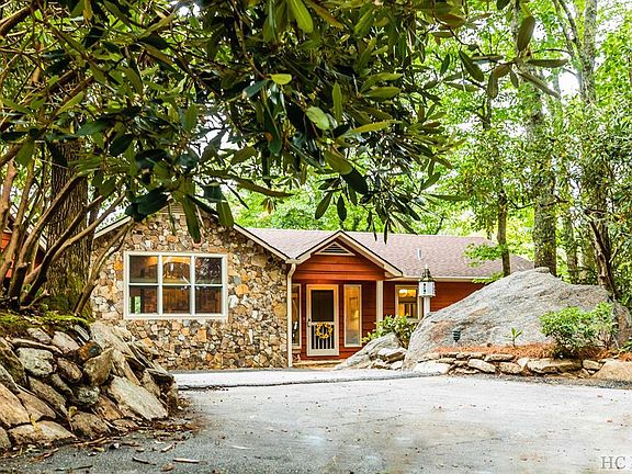 Cute classic Highlands Cottage with winter views! Located in the desirable neighborhood of Flat Mountain Estates just 4 miles from downtown Highlands. 2 large bedrooms a bonus room and three full baths, large eat in kitchen with granite countertops and large center island w/seating. Separate dining room adjoins a spacious living room with huge stone wood burning fireplace, hardwood floors and two porches, one screened to enjoy the outdoors. There is an attached 1 car carport with good parking space and an unfinished basement. The house is also equipped with two water heaters so no shortage of hot water. Great privacy and landscaping, nestled in old growth Rhododendrons. Easy to maintain year around living. Would also be a great rental income property. Priced right and ready to sell!