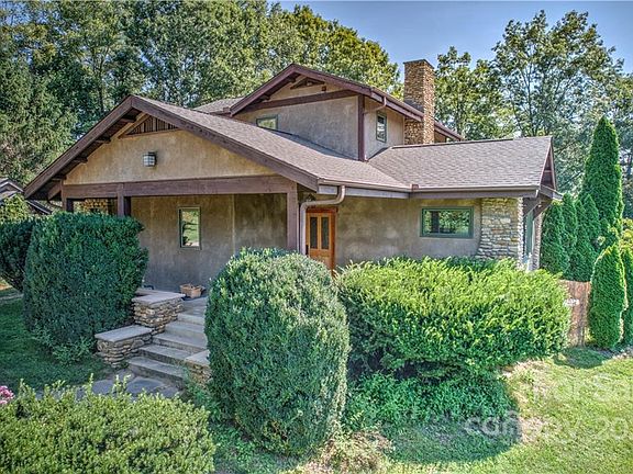 Final and best offers due Monday, September 5, at 5PM! Hard stucco and rock exterior with handcrafted doors, woodwork, & trim throughout.The passive solar design floods light throughout the downstairs & is engineered to capture the earth's natural heating & cooling, storing it in the hand-plastered thermal walls in the main living area.This home sings quality, from the 3/4 height wainscoting of local poplar to the handcrafted cabinetry, stained glass, river rock exterior & special touches throughout.The property sits high above the French Broad River, with long-range views of the mountain in spring, fall,& winter. Great outdoor spaces & areas to walk. A large workshop/studio offers so much opportunity for your work, or home business & could easily be converted to a second living space for a family compound or STR.Over 11 acres with several beautiful homesites. Patio wired for hot tub.One Owner/builder.This home has to be seen to be appreciated.