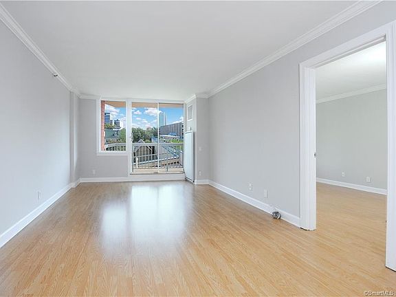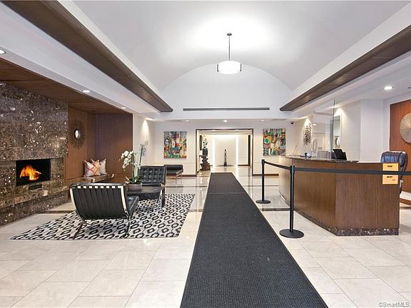 Steal this newly painted, mint condition condominium in a prime downtown Stamford location. This one bedroom plus den/dining area/office and 1 1/2 baths is located in one of Stamford's most prestigious buildings near downtown's many amenities. Included is 1 underground parking space, 24/7 doorman, spectacular views from rooftop commons room with dining/kitchen area, indoor heated pool & gym. The unit has a sunny, double length balcony with sliders from each room overlooking grassy barbecue area. Pets allowed. Investors welcome.