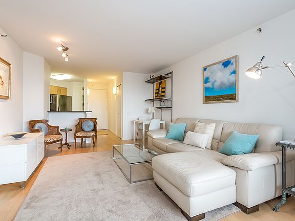 Enjoy the urban vibe and luxurious living at The Classic! Right in the heart of Stamford's downtown; sophisticated shops, restaurants, entertainment and recreation.... all within walking distance! One of Two Assessments Is Fully Paid Off (18K)! EASY TO SHOW! Sun drenched unit with custom wood kitchen cabinetry, quartz countertops, top of the line stainless appliances. Wood floors, large living room/dinning area with a balcony slider, great city views and fabulous sunsets. Master bedroom has walk in closet and glass door leading to a private oversized balcony. Full bathroom with marble countertop & tile with Washer/Dryer closet. Dine alfresco on your balcony or head upstairs to the rooftop deck (18th floor) for panoramic views of the city. Swim year round under the stars in the indoor pool with commanding views of the city, burn some calories in the fitness center or entertain in the club room with a full service kitchen. Residents enjoy 24 hour front desk concierge services and coming soon, a new and improved tree lined dog walking park. Pet friendly building, roomy garage parking spot. Furniture available for sale (not included in the purchase price of unit). Doesn't get better than this, a must see!