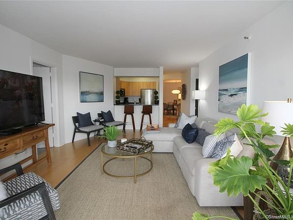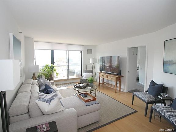 Welcome to Classic one of the most luxurious residences located in the heart of lively downtown Stamford. Walk to shops, theaters, bars and popular restaurants. This upscale condo community offers luxurious lifestyle with 24-hour concierge services, new state of the art fitness center, clubroom with fireplace, one of a kind roof top pool, sundeck. Heat, hot water and cooking gas are included in rent. This spacious open concept 2 bedroom, 2 bath unit features: separate formal dining room or a den, wide plank wood flooring, walls of windows, modern kitchen with granite counters & stainless appliances, marble master bath, full size washer and dryer in unit, each room with access to spacious balcony. A RARE FIND - 2 reserved INDOOR GARAGE SPACES (on level 2nd level #190 & 191 next to each other)! Open and airy Southern exposure with dramatic sunset and cityscape views. Please note photos were taken when prior tenant was residing. A cosmopolitan lifestyle awaits! Agents please read agent remarks regarding application and move-in requirements. AGENTS PLEASE READ AGENT REMARKS FOR APPLICATION REQUIREMENTS.