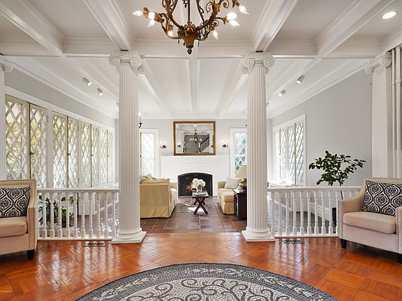 - RoomFamilyRoomFeatures: Sunken, French Doors, Fireplace - Woodburning, Ceilings - Beamed, Bay/Bow Window, Floor - Marble, Dec Molding