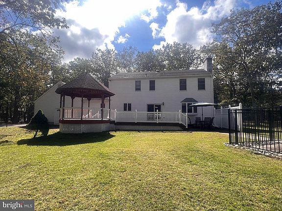 Tabernacle Custom Built home on 3+acres . This wonderful 4 bedroom 2 1/2 bath home features a bonus room on the main level, with it's own entrance. This space has a fabulous cathedral ceiling made from rustic reclaimed barn wood, it has it's own 1/2 bath that could easily convert to a full bath, making it another primary bedroom/suite. The laundry room is accessed from this area as well. Beautiful hardwood floors run through out the home and crown molding abounds. The kitchen's granite countertops and apron front sink brings old world style into the modern kitchen with cherry cabinetry, gorgeous tiled back splash. black appliances and stainless steel refrigerator. The tile floor in the kitchen extends to the traditional center hall colonial foyer. The den just off of the kitchen has a brick fireplace. Double doors with glass panes lead you to a formal dining room perfect for gathering. Just across the foyer is what is currently a family room but would make a great office space as well. Heading up the stairs there is a magnificent Tiffany Chandelier. The primary bedroom has a newly remodeled bathroom and walk in closet. Three additional bedrooms and another full bath finish off the upstairs. A partially finished full basement with access from the kitchen and also from the double car garage adds so much storage space and room to use your imagination. Outback there is a trex deck with gazebo and inground pool. Don't miss seeing this home!