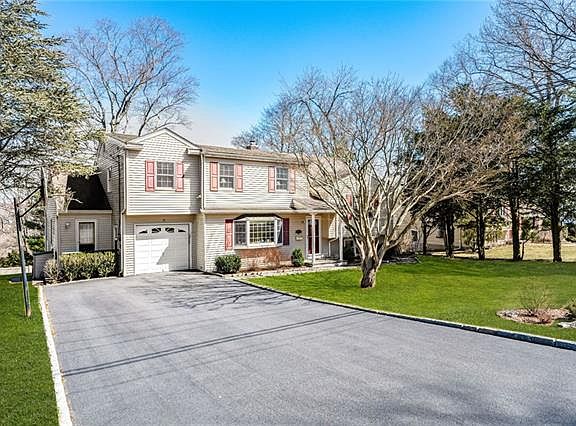 Move right in to this spacious, sun-drenched split with expansive yard! A bright living room with beautiful bay windows leads into dining room with french doors and large, eat-in kitchen with plenty of counter space and views of the stunning backyard. Light-filled, open family room with cathedral ceilings, wood-burning fireplace and sliders to large deck completes first floor, which boasts hardwood floors throughout. Mudroom conveniently located off family room has its own separate entrance. Retreat upstairs into the lofty master suite with 3 closets, a beautifully updated master bath and additional room perfect for nursery, home office or gym! Lower level has finished playroom/den, powder room and laundry closet. This home also has a transfer switch for easy generator hookup! This impeccably-maintained home has storage galore, an abundance of light, and the perfect flow for entertaining! Taxes do not reflect STAR of $1,729. Taxes grieved and will be reduced by $1,845!