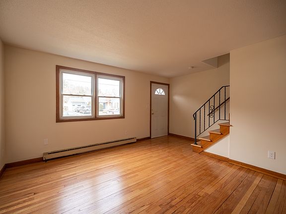 The first floor features a living room, an eating kitchen, and a half bathroom. The second floor has 2 spacious bedrooms with a closet and a full bathroom. The basement has a washer and dryer hookup and plenty of storage space. Off-street parking is assigned to the unit.