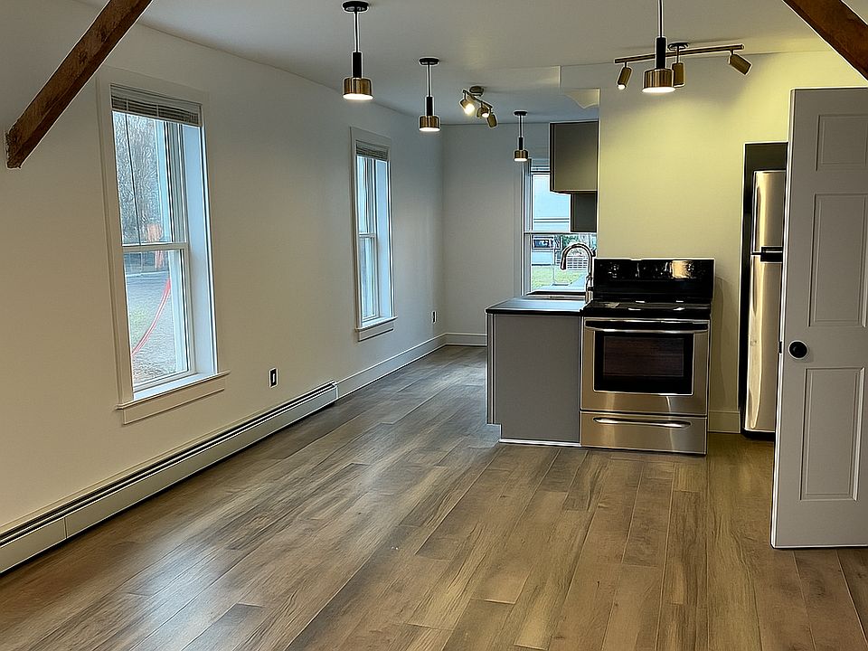 Freshly renovated 900 square foot two bedroom, one bathroom apartment located near parks in Auburn. The apartment has a washer, dryer, dishwasher all in the unit. Plenty of windows let in lots of natural light and overlook Pettengill Park. Two off street parking spaces are included just outside the ground level entryway. Heat, hot water, and WIFI are all included in rent. The apartment is unfurnished. We are currently not setup for vouchers of any kind. Minimum credit score of 600 required and income of 3x monthly rent for any prospective tenant. This will be available for an October 1st move in. Rent includes heat, hot water, and internet. Tenants is responsible for electricity. Year lease required for first year.