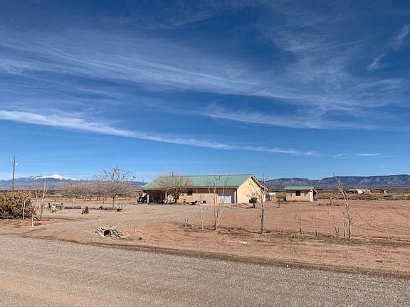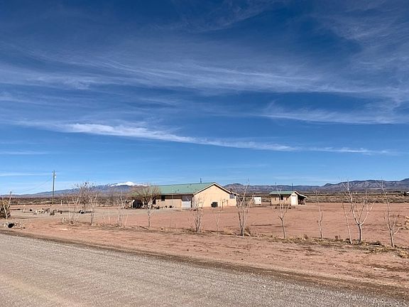 Three bedroom, two bathroom home on a little over 10 acres in Tularosa NM. Plenty of parking with attached garage, detached UTV garage and carport/lean to. Refrigerated air and a metal roof makes this a great home.