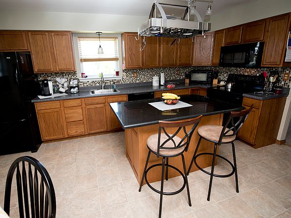 Large family? Take a look at this spacious 5 bedroom, 2 bath, 2,100 square foot Ranch style home. Kitchen has oak cabinets with new center island and back splash and all appliances. Large living room with new carpeting and nice large baster bedroom with large closet. Finished basement with 2 bedrooms, 3/4 bath with laundry and family room. Walk out basement, attached 2 car garage, pressure treated deck with new stairs and municipal water and sewer.