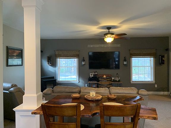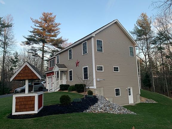 Colonial Style home with impeccable upkeep located in a great neighborhood with private setting on just under 3 acres on land. 600' Private paved driveway with plenty of parking. Two stall attached garage. Large storage shed right off the driveway. Well manicured lawn with irrigation system, great for pets and kids. House finished square footage with basement is just under 2,800. Inside features a mix of hardwood, tile, and carpeted floors. Downstairs is all open living with kitchen, living and dining wide open. There is a half bath downstairs with laundry. Out back off the kitchen features approximately 600 square feet of deck all in composite. Upstairs features four bedrooms and two bathrooms. Master includes its own bath and walk in closet. Both bathrooms have newer tile installed on the floors. Down in the basement there is 700 square feet of finished space with bar perfect for get together, kids playroom and more. House includes water filtration system and softener, whole home humidification, new as of 2019 Pellet Stove, and all new appliances in the kitchen. The whole interior has been painted in the past year. Photos online are combined of current and some empty from when house was built as we are in the process of moving and boxes take up a good part of the bedrooms. One photo shows 1st and 2nd story layout and sizing. Call 603 401 3915 with any questions.