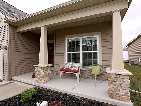 Stunning Ranch Condo on premium lot with lovely pond views from living room & Kitchen. Superb open floor plan with cathedral ceiling in living room & corner gas fireplace. Upgraded kitchen cabinets, granite counter tops & hardwood floors in kitchen that is open to the living room. Master bedroom also has a view of the pond. Master bath with double sinks and walk-in shower. 9' First floor ceilings, central air and hardwood floors in foyer.