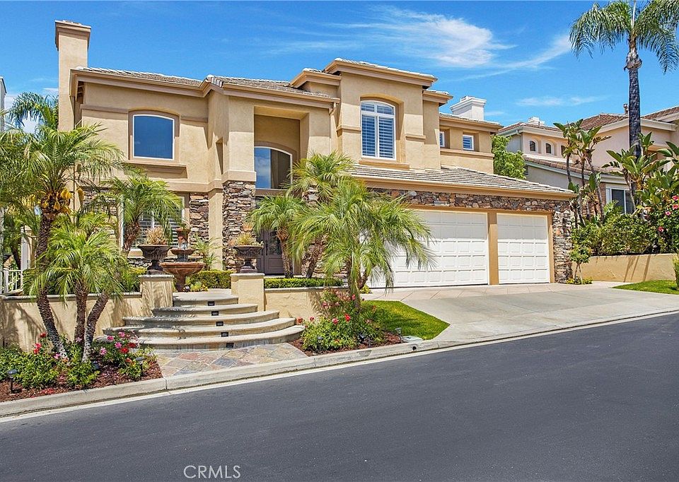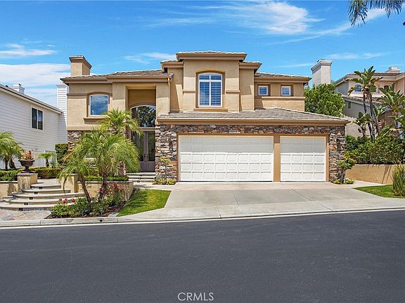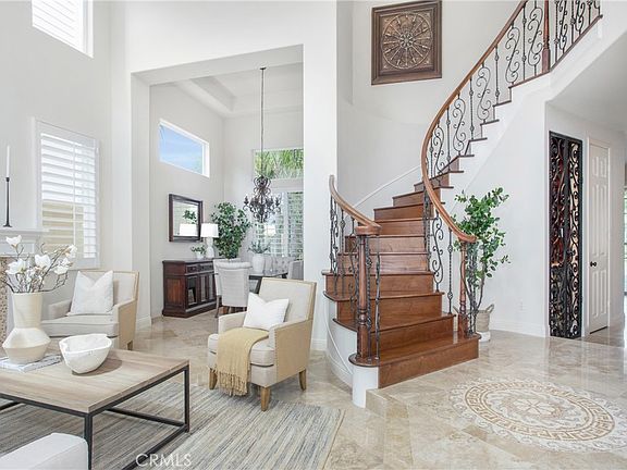 This stunning and highly upgraded view home is located in the exclusive Guard Gated, Golf Course community of Dove Canyon overlooking the driving range and Saddleback Mountains. Inviting and Lush Landscape, Custom Stacked Stone, new Exterior Paint and Sparkling Fountain welcome you home. The Wrought Iron and Leaded Glass Front Door opens to a large foyer with a dramatic Custom Cherry Wood and Wrought Iron Staircase, beautiful light Travertine Floors and Fresh Paint thruout. The 2 story ceilings and abundance of windows bring in so much natural light. The attention to detail and designer touches create warmth and comfort throughout. The formal living room has a Custom Stone design fireplace that opens to your formal dining. The gourmet kitchen has been upgraded with Granite Countertops, dark cabinets, custom backsplash, SS appliances and separate coffee station. The kitchen nook opens to the family room with a Stacked Stone Fireplace, Shutters and Breathtaking Views from the backyard. There is a custom Wine Closet with wine fridge and beautiful iron door perfect for entertaining. There is a Main Floor also has a bedroom with a full bath, perfect for guests or a WFH office. The 2nd story has hardwood floors. The Primary bedroom is very spacious with sitting area and cozy fireplace, high ceilings and shutters. The Primary Bath has been completely Remodeled and also has a large walk-in closet. There are two large secondary bedrooms upstairs both en suite. The backyard has built-in BBQ, Firepit, SPA, Grass Area and a beautiful VIEW. The upgrades continue with SOLAR, NEW ROOF, NEW HVAC. WATER SOFTENER, TESLA CHARGING STATION, SMART HOME, NEST and more. Dove Canyon is home to the private Jack Nicklaus ‘Signature’ Golf course. The community amenities include pool, spa, tennis and Pickleball courts, basketball court, parks, trails for hiking, biking. This gorgeous and truly turnkey home won’t last!