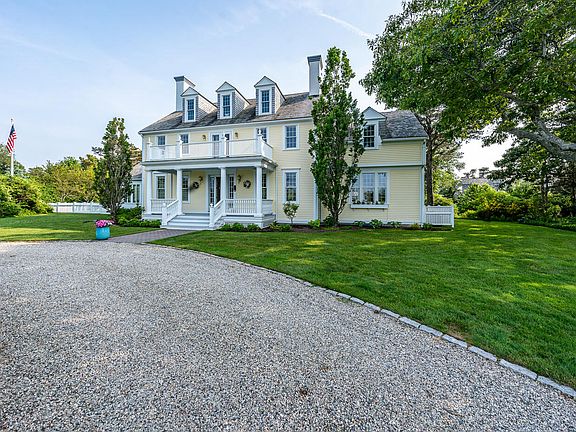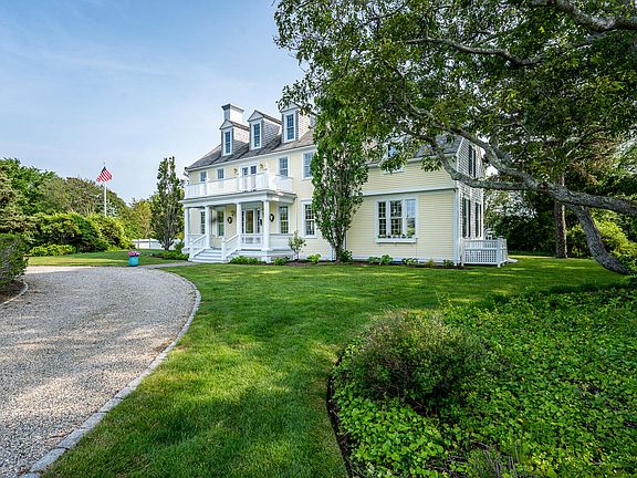 Custom built for an elegant coastal lifestyle, this home features water views from every room and deeded beach rights to Cape Cod Bay . Entering through the covered front porch you experience the open airy interior bathed in natural light. The custom designed kitchen with huge, center island and spacious dining area, opens to the great room with Rumford fireplace and beautiful built-ins. Double French doors lead into the formal dining room with bay window, transom windows, and exquisite crown moldings. The main floor also features a cozy sunroom, laundry room, powder room, and spacious ensuite bedroom. On the second floor you will find the elegant primary bedroom with double doors opening onto a spacious deck for morning coffee. This suite also includes French doors opening into a cozy sitting room with fireplace and wall of custom built ins. Down the hallway is another, spacious ensuite bedroom with cathedral, beadboard ceiling. The third floor offers a gorgeous, 840 sq ft, light filled family room/office with half bath. The carriage house/2 car garage has huge, second floor storage, charming cupola, and outdoor shower. Also featured is a 100AMP, propane generator.