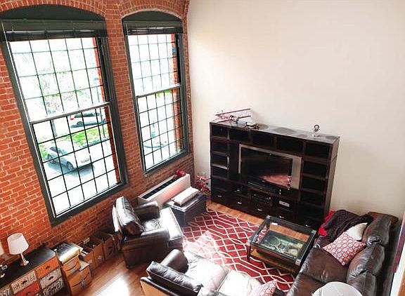 We are offering the largest classic, townhouse style unit at the Clocktower with soaring brick walls and high ceilings, post and beam factory ceilings, large windows with tons of afternoon light. This large one bedroom has a living room and dining room with hardwood floors and large walk-in closet that could fit all of your seasonal clothing, a bike and more. This quiet corner unit is situated near the the laundry for maximum convenience and has newer water heater, heat pump, faucets and bathroom fixtures. The building has use of a gym, party room for gatherings and a billiard room. a true loft-living experience!