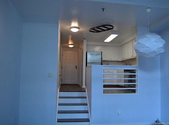 Beautiful remodeled industrial/NY style condo with view of the courtyard! Located on the 2nd floor of historic & charming Clocktower Close building. Spacious & bright loft style unit with exposed brick. 2 story windows fill the living space with natural light. Fully equipped kitchen and 1/2 bath complete the first level. 2nd level is complete with loft style bedroom, plenty of closet space and full bath. Washer and dryer in common area. Additional complex features include elevator, gym with sauna, community & conference room. Walk to shopping & local restaurants. Minutes to I-95 and Merritt parkway. 1 off street parking space. Covered garage space may be available for additional $100 per month. newer ac/heat unit, ceiling fan, kitchen counters and living room/bedroom flooring.