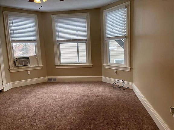 Beautiful -just remodeled before listing for occupancy. Upper 2 floors of large building. New appliances- 2 Heat-pump s-a/c units on third floor for 16x11bedroom and large open 16z22 area. Forced air for main floor. Modern kitchen. Pets-cat only no dogs. Washer/dryer in basement for this unit. Large open rooms, and walking to restaurants and shops. Check video tour on Youtube link to see rooms with sizes.