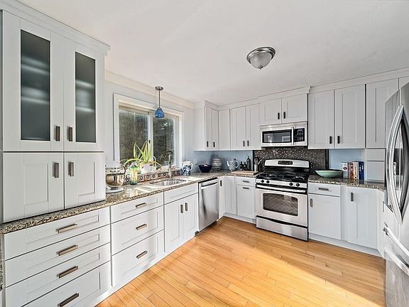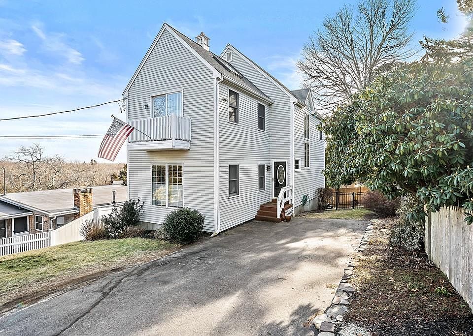 This beautiful Rexhame Beach home sits high atop a hill, offering seasonal views of the ocean from it's master bedroom Juliet balcony. Large 3 bedroom, 2 full bath 2X6 constructed home is everything you would want in a year round beach house, an enclosed outdoor shower to rinse the sand from your feet, a short stroll to one of Marshfield's best beaches, and convenient to Routes 139 & 3. This multi level home offers plenty of storage and space to grow! There is an oversized deck (12'X19') off the dining room to relax on those warm days and a gas fireplace in the sunken living room on those chilly nights. The kitchen offers updated chic cabinets with gas cooking and plenty of prep space for entertaining guests. The dining room has a built in coffee/breakfast granite buffet, with cabinets, for extra serving space and storage. All 3 bedrooms are generously spacious, the master has a walk-in closet & one additional closet. No flood insurance is required! Welcome to Rexhame Beach Living!