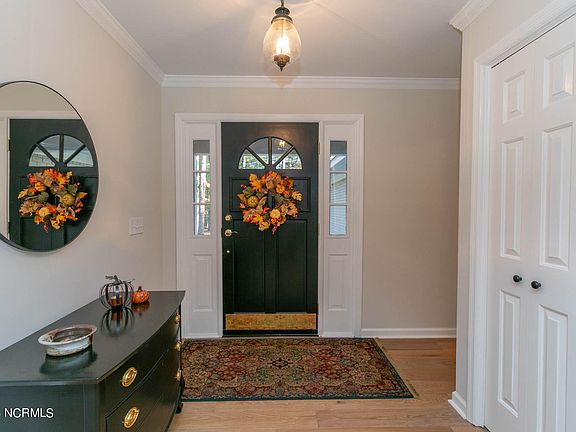 You can stop looking after you see this single-level brick home in idyllic Clarendon Gardens that has been extensively renovated and beautifully updated! This 3-bedroom/2 bath home is incredibly open with abundant natural light, new engineered wood floors in the main living areas and primary bedroom, and crown molding throughout. A spacious living room has a lovely corner white brick wood-burning fireplace, and three sets of sliding glass doors across the back, two opening to a screened porch. A completely remodeled kitchen has beautiful white wood cabinetry, quartz countertops and herringbone tile backsplash, farmhouse sink with pulldown faucet, stainless steel appliances and bright breakfast nook with chair rail trim by a sliding glass door opening to a back patio. The primary suite features a spacious bedroom, large walk-in closet, sliding glass door opening to the patio, and en-suite bath that has a double sink vanity, quartz countertop, lighted mirror, luxurious step-in shower with subway tile surround and bench. The guest bedrooms have new carpet, and lots of closet space. A full bathroom, which also has access from one of the bedrooms, has a single-sink vanity with granite countertop and tub-shower. This home is on a nicely landscaped wooded lot with new lawns in front and back. A private backyard surrounded by woods also has a fire pit. It is a quiet neighborhood, just off Linden Road and is convenient to village shopping and dining. This home is in mint condition and is a must see!