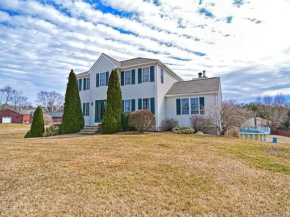 Very well maintained (one owner) country colonial is placed perfectly on an almost acre lot. Plenty of open yard space to play sports and entertain. Hot summer days will be refreshing with the above ground pool. Plenty of storage in the two car garage and shed. As you step through the updated glass front door, you'll appreciate the abundance of light that shines in. Open floor plan leads you into the formal dining room, then into the updated kitchen which includes granite counter tops and updated backsplash. Eat in kitchen includes a pellet stove that makes every cold winter night cozy. Additional bonus room off the kitchen is being used as a den, but could be used as a home office, extra bedroom,crafts room, play room-customize to your family needs. Family room has a large window and fireplace. Fireplace has been updated with the same backsplash as in the kitchen. Master bedroom includes a walk in closet with a window, master bath has plenty of room for a soaking tub.