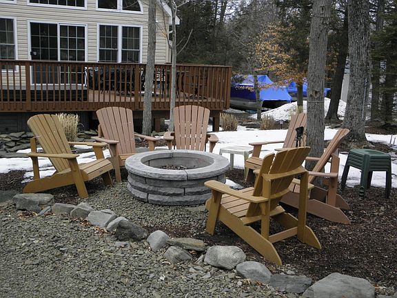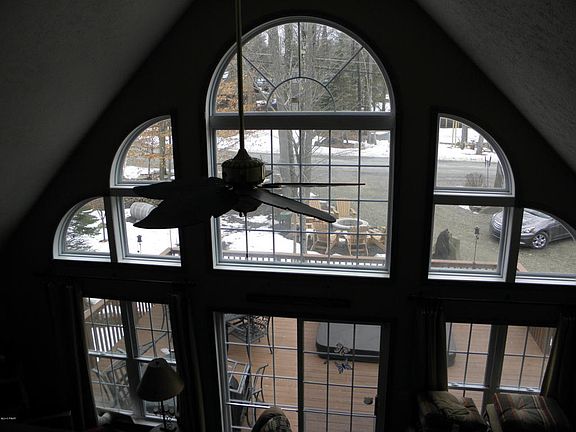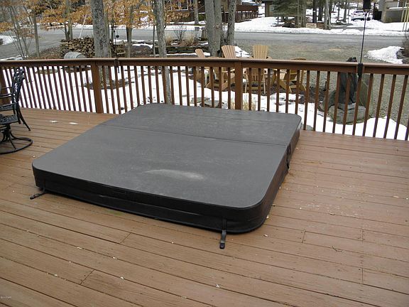 Chalet 9 years young with upgraded interior and fully landscaped exterior. Floor to ceiling glass in LR with gas FP, 3BRs with 3 full floor to ceiling tiled baths, family room in lower level with at grade walk out for easy entrance.Huge front deck with inset hottub, firepit for nighttime enjoyment and rear private deck off kitchen Circular drive to 1+ car garage for all the toys you need in this full amenity community.Marina access to 5700 ac Lake Wallenpaupack!Enclosed outside Country shower.