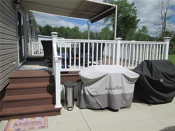 NEW, NEW, NEW! This 3 bedroom, 2 1/2 bath ranch home in Camelot Village is the cream of the crop in this park! Brand new granite counter kitchen with huge island and maple cabinetry, plus all new SS appliances. New flooring throughout featuring hickory hardwoods and new carpeting in all bedrooms. Also new; high efficiency gas furnace, C/A, on-demand hot water tank, 20x16 deck with awning, washer, dryer, bath fixtures, landscaping, and new roof on the house and garage! This home has an open concept with great flow from the eat-in kitchen to the fireplaced family room, which makes it great for entertaining! Outside you will find a 2-stall 24x24 garage, updated landscaping and that new deck to enjoy all summer long! Don't wait on this one!! (park approval is needed) 2022-06-27