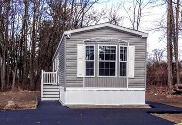 New Manufactured Home to be built on end lot, featuring 2 bedrooms, full bath eat in kitchen and spacious living room. Many options and up grades available, Choose from Hickory or oak kitchen cabinets, white, back or stainless appliances. Small pet friendly community close to commuter rail, monthly fee is $430. included Real Estate taxes, water, sewerage, trash removal and plowing of streets.
