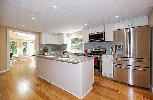This Completely Renovated home has gone through quite a transformation from foundation to roof! Great location on nice leveled corner lot surrounded mostly by Town owned Land. Walk into the bright sun-filled living/dining area with beautiful bamboo flooring throughout. Step into the kitchen that has been completely updated with white shaker style cabinetry, granite countertops, large island Stainless Steel appliances with gas stove and recessed lighting. Off the kitchen is another room with skylight that can be used as a mudroom, sunroom or extra living area. First floor large master bedroom with cathedral ceiling and walk in closet.. Also on this level is a full bath with double vanity, bluetooth speakers and tiled tub/shower. Upper level has 2 additional good size bedrooms along with another full bath with marble countertops. A fire pit area has been added and yard has just been seeded. **SELLER OFFERING $5,000.00 credit towards Closing Costs**