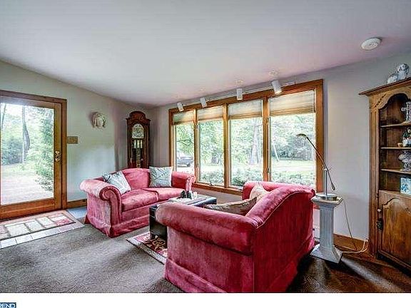 This is the place to get away from it all. Whether you are looking for a full time residence, or a place to relax and get away, this home is a wonderful choice. This bespoke beauty created by Bucks County builder Tuck Elfman combines both contemporary and craftsman elements and even throws in a bit of bungalow to create an open, airy home with interesting lines and architectural flair. This home is so welcoming for friends and family that no one uses the front door-so we will enter the side door into the Great Room. On the left, nestled under 4 long casement windows with the extant wood trim found throughout the home, is the family room. The great room is essentially one big room that has been artfully designed for multiple purposes. Open to the family room area is the terrific kitchen with beautiful cabinetry and granite counter tops. A Jenn-Aire down draft range and Jenn-Aire dishwasher are built in and easily accessible to the giant pantry that provides the lynchpin for the entire room. Wide plank flooring, beadboard cathedral ceilings, track and recessed lighting and walls of windows keep things open and light. The Dining area of the great room is next with walls of sliders to the screened porch. The living room features a stone wood burning fireplace and also has walls of sliders to the screened in porch. Completely screened and embellished with skylights, the sun porch is heated by the sun in winter and cooled by the shade of trees in the summer. A 6 seat hot tub allows you to relax and look up through the skylights to watch the wind whispering through the trees. A tiled center hall with multiple closets and half bath brings you to the back of the home where two spacious bedrooms share the main floor full bath. One of the bedrooms features double walk in closets and sliders to the rear deck. The entire second floor is dedicated to the master bedroom suite. A vast room, it has plenty of space for a sitting area and a desk or dressing area. An amazing master bath with two person heated and jetted tub and separate glass shower open to the upper deck. A wonderful place for stretching in the sunshine before a warm bubbling bath. 2.20 very serene acres of natural woodland landscaping combined with low maintenance perennial plantings makes for a lovely place to sit quietly and listen to the symphony of birdsong that surrounds you in this beautiful home. 10 minutes to the Delaware River and equidistant to NYC and Phila in roughly 90 minutes.