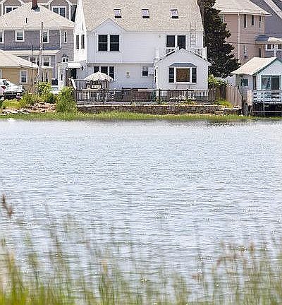 JUST REDUCED and OWNER SAYS SELL! Waterfront! Four-bed, two-bath oasis boasts spectacular ocean and bay views from almost every room, updated second floor construction with loft space, and two sizable decks for entertaining. This low-maintenance home has vinyl siding, ceramic tile, and hardwood floors, so you can spend more time enjoying the water, relaxing at the beach, or kayaking from your property out to Worlds End. Deep-water mooring is available. Gas fireplace for cozy evenings. No lawn to mow. Come to the beach and relax.