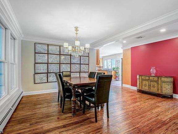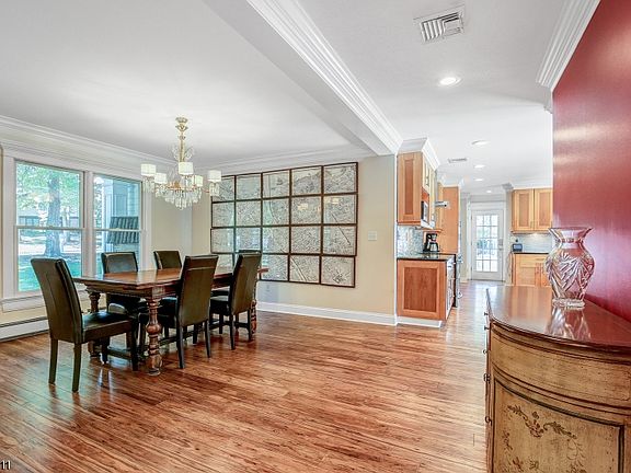 As you enter this home you will be amazed at the openness & light in the home. The rooms flow seamlessly into each other and the custom moldings enhance the space further. There is eucalyptus flooringthroughout first floor along with a renovated full bath. The Ki tchen features Shaker style cabinetry, granite counters, Stainless Steel tiled backsplash & Stainless Steel appliances. There are sliders from the Kitchen & the Office/Den to the large patio & level rear yard. Upstairs the Master Suite has a large walk in closet, dressing area & renovated ensuite bath. The 3 other bedrooms are all a good size. There is hardwood flooring throughout second floor & an updated Main bath. This level open property backs up to town owned land. The solar roof panels are a cost saving addition too!