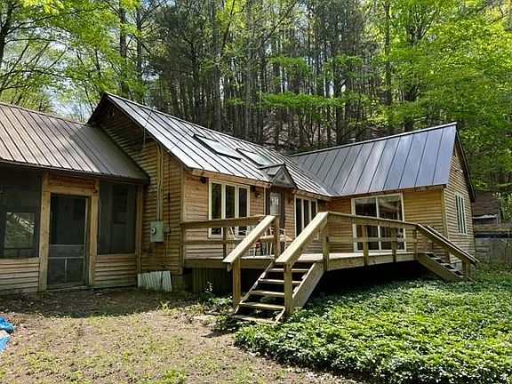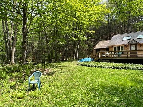 Beside a brook, under a canopy of trees, utter peace and quiet reign in this woodland retreat, a peace accented by the bubbling of the brook and the wind rustling through the trees. Though you are remote from the bustle of town, this retreat actually lies less than a mile from Rt 30 and is only an eight-minute drive from Brattleboro. Curl up in front of the wood stove in the great room that houses the kitchen, dining area and living room. Above, a loft provides extra sleeping space and a cozy hide-away. To the side of the great room you will find two bedrooms, one with a slider to the deck. Next to the full bathroom stands a washer and dryer. A newer addition of a studio/office is attached by way of the screened in breezeway. This studio boasts a loft providing additional sleeping space. With its five mini-stained glass windows and its sliding glass door leading to a tiny brook-side patio, it could not be more charming. If that weren’t enough, there are two outbuildings, a woodshed, a recessed picnic area by the brook, and a wood-fired sauna. Sit on the sauna’s deck overlooking a spectacular view of the water and read a book or, better still, let the beauty overtake you and do nothing at all. Come enjoy this rustic, simple retreat eight minutes to Brattleboro and only 30 minutes to skiing at Mt Snow. Showings start May 17th.