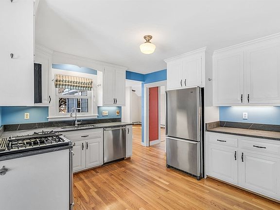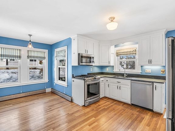 Beautifully maintained antique in convenient location near downtown, schools and Charles River Rail Trail. This home features charming details along with modern ammenities such as gas fireplace, low maintenance siding, vinyl windows and newer heating system. Country kitchen includes hardwood flooring, soapstone counters, s/s appliances, white cabinets and eat in area. Den with built in book shelves flows into family room addition with french doors to the exterior living space. Upstairs the large primary features four closets for all your storage needs. Large bath has dual vanities, soaker tub and skylight for natural lighting. Gorgeous oversized screen porch (2019) spans the front of the home and offers perfect place to enjoy your morning coffee or meals outside. Need more room to spread out? Check out the lower level rec room. Outside, follow the brick walkway past the custom raised beds, perfect for growing your own herb garden, vegetables & flowers, to the patio and back yard.