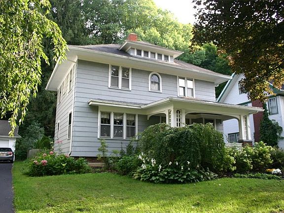 Price reduced! Gorgeous 4 bedroom colonial filled with charm with a great kitchen and wonderful condition. Natural trim, leaded glass windows and doors, refinished hardwoods, wbfp, pocket door, french doors, ceramic entries, and so much more. Beautiful honey maple eat-in kitchen includes stove, refrigerator, dishwasher, microwave, and disposal. Four varied bedrooms up with a beautiful period-style bath. Lovely open front porch and rear patio connect you to nature and neighbors. Two car garage with newer doors and openers, plus additional storage shed on back. High eff furnace, central air, and excellent mechanics complete the picture. With a wonderful location steps from Highland Park on one of the South Wedge's best streets, this home is sure to please. Open Sunday, 9/29, 11:30-1:00.