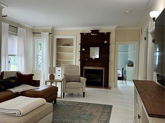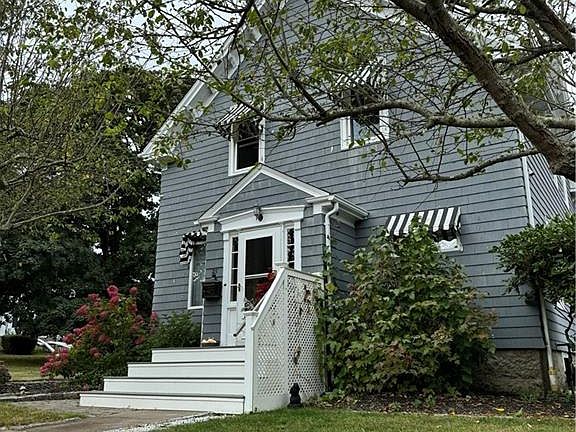 Gorgeous views of Sakonnet Bay and the Mt. Hope Bridge! One of a kind Tiverton Colonial, has a wonderful Old World charm with a large formal living room, gas fireplace, and built-ins. First floor enclosed porch would be the perfect home office. 3 bathrooms and 4 generous bedrooms; former garage is now additional living space with vaulted ceilings and engineered hardwoods; perfect for a studio; separate entrance. Huge yard with water views and off street parking for 4 to 6 cars! This one is a GEM!