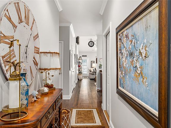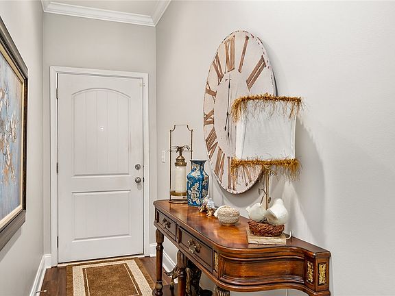 Welcome home to this well maintained ONE LEVEL, 2 bedroom and 2 bath townhome located in the desirable subdivision of Crayton Hall. This townhome is located in the more private cul-de-sac location of this beautiful gated community where all your outside maintenance is taken care of for you for only $140 a month. As you step inside, you will notice the beautiful flooring that leads you into the open floorplan of the kitchen, dining area and main living room. The living room has vaulted ceilings and a gas fireplace rounding out this very inviting area. The kitchen has stainless steel appliances that will all remain, beautiful kitchen back splash, wide open pass through opening, plentiful cabinets for all your storage needs and a separate pantry. The large master suite has a trey ceiling, walk in closet along with a full bathroom featuring a separate shower with glass door, a garden tub, and double sinks. 12x11 guest bedroom with double windows brings in lots of light! Enjoy the walk-in laundry room complete with washer and dryer! Plenty of storage areas in the home as well as a one car attached garage. Walk out the back door to the patio and enjoy the outdoor storage closet along with the expansive yard with covered retractable awning for those beautiful spring days!