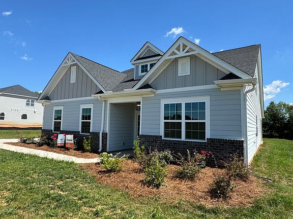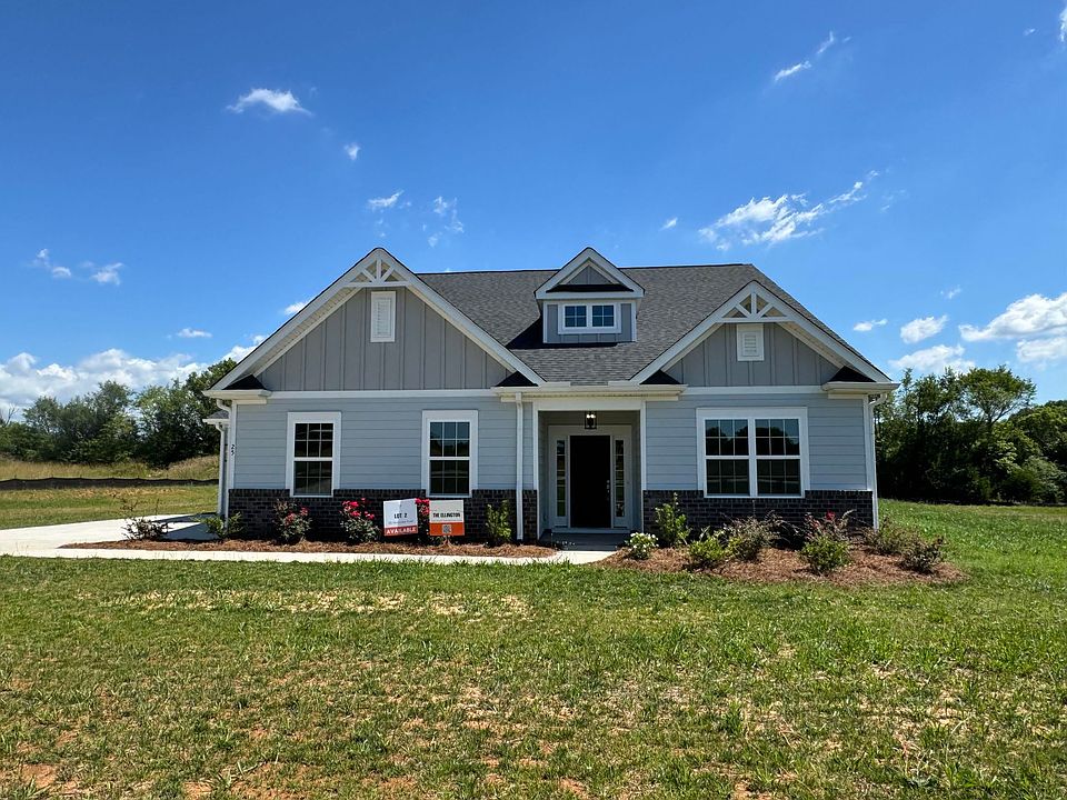 Contact Sales Agent for Special Financing! Welcome home to this 1.5 story, Craftsman-Style home with painted siding plus shake and brick accents. Located on a flat .984 acre homesite, you can relish under your covered porch overlooking a flat yard with plenty of space to personalize your own outdoor oasis! This home includes a 2-car side entry garage and a single car carriage garage. Enjoy first-floor living in the Ellington, where the Premier Suite and most of the living space is on the main floor. Generous Laundry and Mudroom with drop zone at the garage entry adds convenience and functionality. A Guest Suite, full bath and Flex room can be found off the foyer upon entering the home. The heart of the home is centralized around the Kitchen, which opens up to the Morning room and Family room. The Kitchen showcases 42" bright white cabinets, quartz countertops, tile backsplash, veneer wrapped island, and double-trash pullout. GE Stainless steel appliances with wall mounted chimney hood and 36" gas cooktop. Butler's pantry and walk-in pantry. The Family room boasts vaulted ceilings, a gas fireplace with marble surround and built-in media niche. The Premier Suite and Premier bath are located off the Family room featuring 9' ceilings, large windows, painted cabinets, tiled shower with semi-frameless glass, brushed nickel plumbing fixtures and walk-in closet. Upstairs includes a rec room, secondary bedroom with walk-in closet, full bath and an unfinished walk-in storage closet. Secondary baths include quartz counters, white painted cabinets, and tiled floors. Hardwood flooring can be found throughout most of the main living space on the first floor, with oak treads on the stairs. Tile flooring in the laundry room. Includes energy-saving tankless hot water heater and radiant barrier sheathing. Enjoy living among quiet farmland, yet you'll be only 1.5 miles from I-385 and less than 5 miles to Martin Farms shopping center. Seller will reseed and straw the yard prior to closing