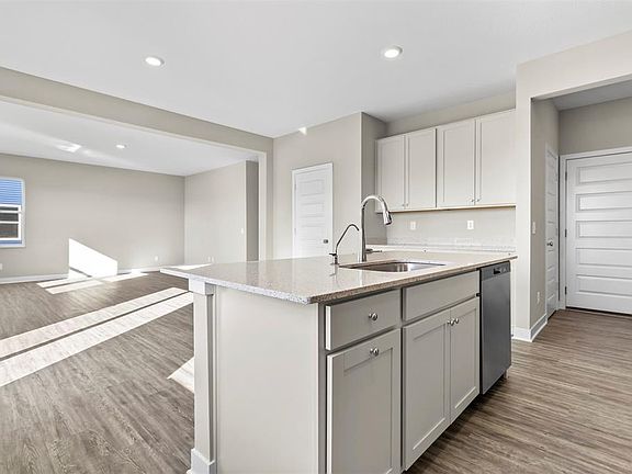 Newly constructed home featuring 5 bedrooms, 3 full bathrooms, 9' first floor ceilings, luxury vinyl plank flooring throughout most of the main level, quartz countertops, ample kitchen cabinetry with roll-outs for trash cans, loft upstairs, 5th bedroom on the main level with adjacent full bathroom. The spacious owner suite offers a sizeable walk-in closet and large shower with double bowl vanities. The exterior 10x10 patio and yard backing up to the common area will offer plenty of room to relax outside. This is a must see!