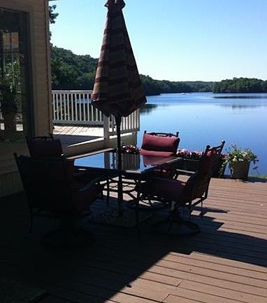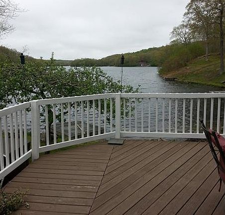 The views don`t change, just the memories. Sit back and watch the ducks , egrets , swans, osprey and eagles hunt for fish in this stocked pond. The possibilities are endless . The sunsets are to die for from this waterfront property located on the most northerly end of Long Pond with approximately 920 feet of shoreline frontage . The property abuts State of Connecticut property to the East adding to the private setting of 2.34 acres . The landscaping includes two mature apple trees along with four mature blueberry bushes. The interior open floor plan , 1803 square feet , includes Dining Room, Kitchen , Family Room , 2 Bedrooms , 1 Full Bath , 1/2 Bath and a possible 3rd Bedroom now being used as an office. The open floor layout with open partitions allows or views of Long Pond from all rooms but two. The gorgeous updated Kitchen includes a Gas Stove , Granite Counter Tops, Stainless Steel Appliances all of which make cooking a joy while viewing the ever-changing views of Long Pond . The large windowed Great Room/Family Room has a Gas Fireplace / Stove for those cozy moonlite nights . The full dry Basement has a Finished Pantry and Clothes Storage Closet. Adjoining and connected too the rear of the home are Two Decks at various elevations , consisting of approximately 1200 square feet , and are proximate to the shoreline of Long Pond . Enjoy gardening in the Raised Garden Beds. There is a Floating Dock and a comfortable Private Outside Shower . A must see to be appreciated !