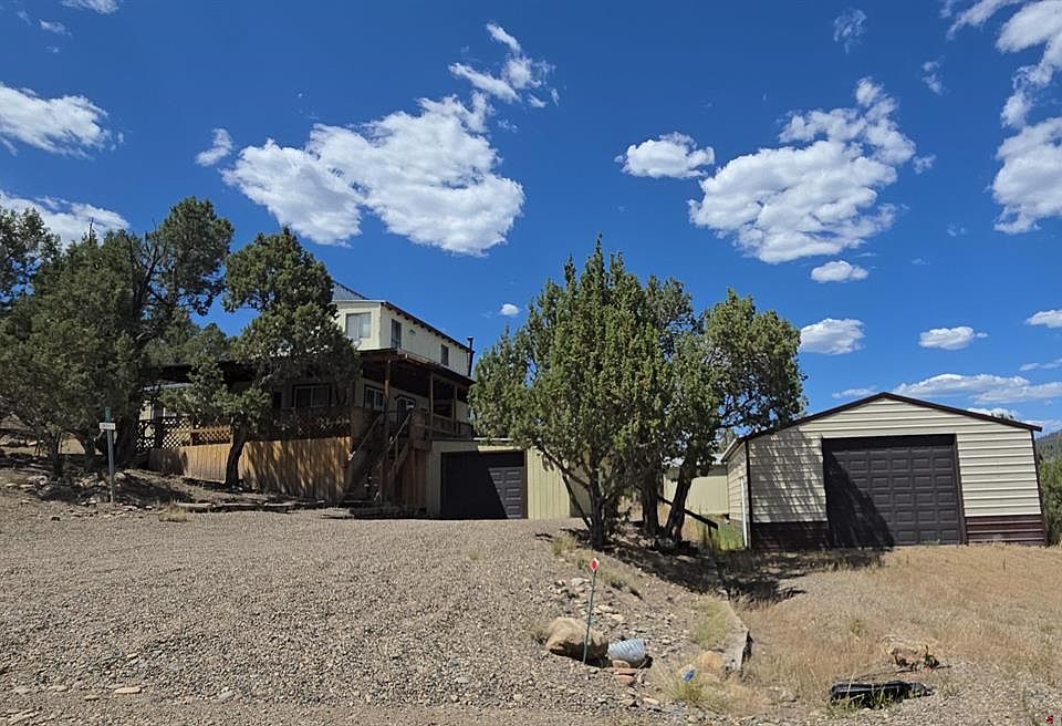 Fishermen and boaters dream at Arboles! Only a hop, skip and a jump from Navajo Reservoir! This 2 bdrm home is mostly furnished and ready for you to enjoy your next fishing vacation or live year round. This property comes with two separate lots to enjoy your privacy. There is an extra large detached garage to store your boat or other toys as well as a one car attached garage and a storage shed. You will enjoy the large wraparound deck with a beautiful view of the reservoir. Inside you will find the kitchen, dining room, and living room with a woodburning stove. Also on the main level are two bathrooms and a bedroom (non conforming). Upstairs you will find a large open bedroom (non conforming) ideal for several beds dorm style or use your imagination and design it as you like.