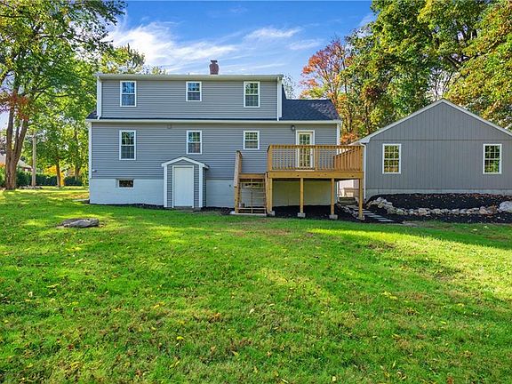 This gorgeous 3 bed, 2 full bath Cape has been beautifully renovated from the studs in! The roof was fully dormered in the rear, giving ample living space on the second level! Gleaming hardwoods throughout, granite kitchen with stainless appliances, tons of natural light, a finished bonus room in the basement, brand new Slant-Fin heating system with 3 zones, and a new deck overlooking a spacious back yard!! There is also a detached 2 car garage with power, paved driveway, all nestled on a lovely residential road up the street from one of the town's recreational fields with playground! Come see!