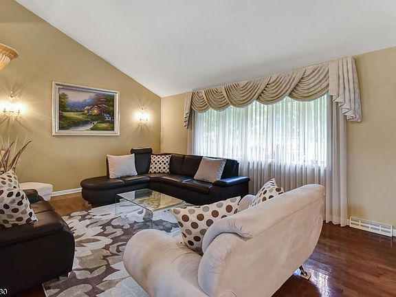 Beautiful setting for a lovely home - Curb appeal - Front porch leads to large entry foyer with porcelain tile. Gleaming Hardwood floors in formal Living & Dining rooms. Huge Kitchen has Oak cabinets, Granite counters, Tumbled marble backsplash, Separate Breakfast area & Vaulted ceiling - Oversized Sliders to Deck & Back yard. Few steps down to Family room with a Gorgeous Stone Fireplace, Powder room & Sliders to Patio. Den with a Wet bar can be 4th Bedroom. Upper level offers Master Bedroom with En suite & 2 other bedrooms. Partial basement offers plenty of storage & houses Utility & Laundry. All this on a level lot & a Circular drive way - This tree lined neighborhood is a most desired location - close to Bee Meadow Pond, Park, Pool, Highways for commuting. Minutes to shopping, schools and NYC bus.