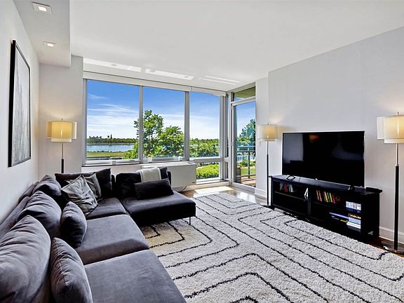 Listen to the water and experience breathtaking sunsets in this rarely available condo. Overlooking a waterfront park, enjoy stunning south and eastern views throughout the home. Your spacious open living and dining room leads into the sleek, fully loaded, kitchen offering modern wood cabinetry, black granite countertops and a beautiful tile backsplash. A large separate storage pantry, with built in wet bar, makes this special unit an entertainer's dream. Both large bedrooms are tucked quietly away, including the huge hotel-like master suite with 3 large closets (including a walk-in). Melt your cares away in its deep soaking tub or separate glass enclosed shower. Your fabulous south facing waterfront terrace looks out at Liberty Park and is covered so you can enjoy in any season. In-unit laundry, additional on-site rental storage and parking are included for your convenience. Liberty Terrace is one of Downtown Jersey City's most prestigious boutique condo buildings. A doorman greets you and your guests in its beautiful marble lobby, while out your door, you'll be steps to a relaxing ferry ride to Manhattan, a short stroll to 24 hr PATH trains, fine dining and more. Welcome home!