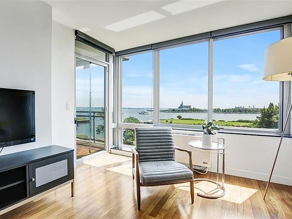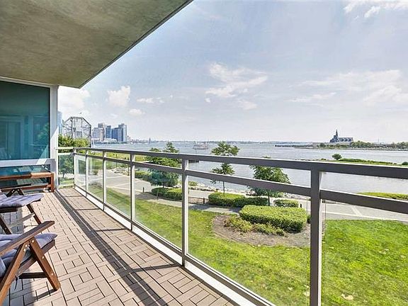 Imagine a breathtaking, tranquil view of NY Harbor, downtown Manhattan, Lady Liberty and the Verrazano Bridge from every room of your home. This South facing 2 bed, 2 bath condo at Liberty Terrace has just that! It is filled with natural light and boasts a double length balcony which has access from both the master bedroom and living room. Upon entering, you are greeted with a chic foyer which flows into the open floor plan living dining, kitchen and balcony. Top-of-the-line stainless appliances, custom wood cabinetry, granite counters and textured metal backsplash are highlights of this designer kitchen. The master bedroom, with a custom walk-in closet, has a large en suite marble bath featuring a double vanity, soaking tub and seamless glass enclosed shower. This luxury building has 24 hour concierge service, a fitness room and is ideally situated close to several mass transit options. The Light Rail, PATH and Ferry are at your doorstep. Assigned garage parking is included in the sale.