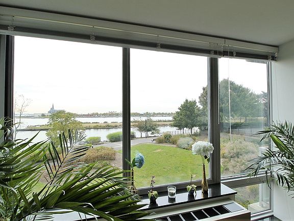 Come and see the Coveted & Spectacular Liberty Terrace. This is the only south-facing and largest one bedroom home with 1.5 baths at Liberty Terrace. An 1168 sqft floor plan boasting an enormous bedroom large enough for king sized bed; nearly 30' long with and an adjoining home office area, walk in closet and en suite Bath. Enormous Living room dining area with floor to ceiling windows boasting palatial views of Hudson Harbor. Open Gourmet kitchen with black Quartz eating island and counters, with SS appliances. 2nd half bath, separate laundry pantry and Large entry foyer with double door closet. 1 detached parking space and fitness room included along with a fulltime doorperson and concierge. Outside enjoy walking, hiking and kayaking along the Boardwalk.