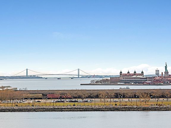 Spectacular breathtaking views every hour of the day and night! Rare high floor south-facing super-sized one bedroom home with 1.5 baths at Liberty Terrace. This superlative condominium features an 1168 sqft floor plan boasting an enormous bedroom large enough for king sized bed and an adjoining home office area or an en suite parlor area. Home features gorgeous southern light through floor to ceiling windows in both the living area and the master bedroom with spectacular views of NYC, NY Harbor, Statue of Liberty and Hudson River. Luxurious master suite with walk-in closet and custom Elfa closet and en suite spa-like Tiger-Beige marble master bath w/frameless glass shower and large soaking tub. Contemporary kitchen with granite counters and recently updated stainless steel appliances. Beautiful additional half-bath off of entry foyer and Bosch washer/dryer in unit. Upgraded lighting components and switches throughout for voice activated lighting. Unit also boasts 2018 upgraded PTAC units in both the living area and the master suite and new appliances. The unit comes with one detached indoor parking spot at Liberty Towers, 33 Hudson Street. 5x5 storage locker available for an additional $100/month. Liberty Terrace is poised at a uniquely sublime waterfront location near LightRail, Ferry and PATH in Paulus Hook/Exchange Place Waterfront, near Greene Park and Morris Canal Park walking trails, basketball courts, and dog run areas and offering sensational Freedom Tower, NYC views as you leave your building each day. Building offers concierge services, gym, gorgeous lobby area, and a location second to none!