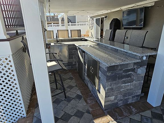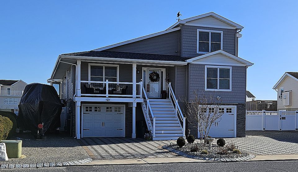 Beautiful 5 bedroom home located in the Atlantis section of Little Egg Harbor with unobstructed view of Atlantic City Skyline. Home was lifted in 2021 along with a full interior renovation which includes renovated kitchen with all new cabinetry, appliances and granite counters, renovated bathrooms, 2nd floor addition which added 2 large bedrooms and full bath and a full under home enclosed garage with heat, AC, workshop and custom gym. Additional upgrades include new electrical service (200amp), new roof, new HVAC, hardscaping both front and rear as well as custom outdoor bar w/TV and custom firepit w/seating. New bulkhead and dual floating docks were installed in 2018. Custom paver walkway guides you through the pea-stone yard and landscaping with a Trex multi-tier deck with screened in gazebo and spa in back.