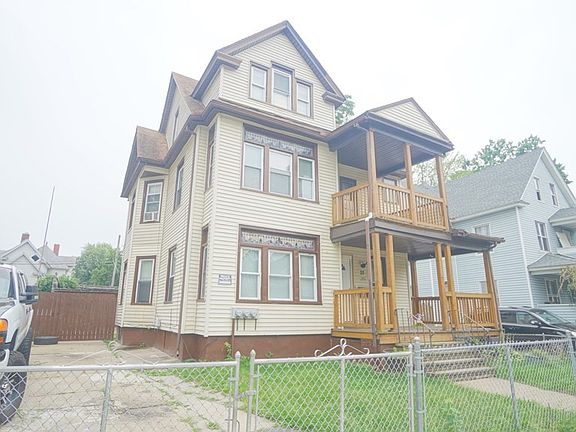 Hola! Vinyl sided three family home . Offers updated roof and front porches. Five rooms, two bedrooms and gas heat on first and second floor. Four rooms ,2 bedrooms, electric heat on third floor. Hardwood floors thru-out and replacement windows. Three car garage. Close to public transportation, hospitals, major highways and downtown MGM. Lead certificates available.