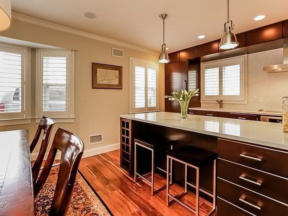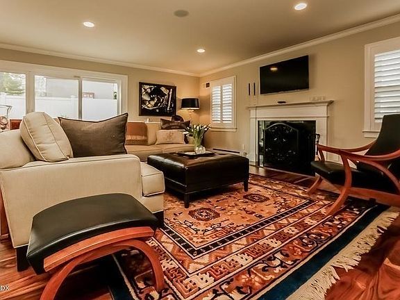 Stunning downtown 3 bedroom 2.5 bath condo w 475sf private stone patio for outdoor living. Light pours in thru plantation shutters of this open floor plan corner unit. Gourmet kitchen features custom cabinetry, Miele and Bosch appliances and ingenious storage solutions. Thoughtful details include hand-scraped hardwood floors, concealed audio/visual system, wood burning fireplace and custom closets. Three bedrooms, including master suite, and laundry are on the second floor. Walk up third floor with natural light has approx 275sf storage and plans avail for future finishing. 2 assigned p...arking spots, one ultra-conveniently located alongside unit. Walk to train, shops, restaurants and Bruce Park.long nd short