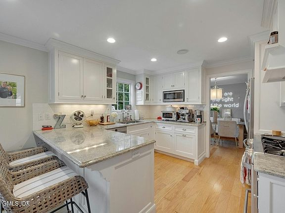 Tucked away on a peaceful cul-de-sac south of the village, this beautiful and expanded Old Greenwich home offers the perfect blend of elegance and convenience. Just a short distance to village shops, restaurants, Old Greenwich Elementary, and the NYC train, the location is unbeatable. The 2008 renovation introduced new windows, a gourmet chef's kitchen, and a sunlit family room with a fireplace. Upstairs, a serene primary suite boasts two walk-in closets and a marble bath, complemented by three additional bedrooms and a second-level sitting room. A timeless retreat in an exceptional setting. 2025-03-11